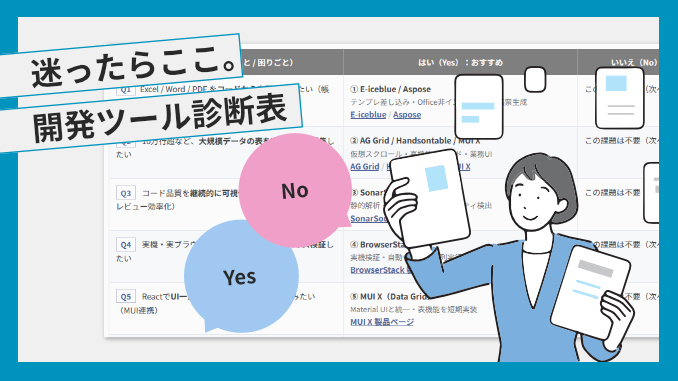 開発課題から選ぶ、開発ツール診断表(Yes / No)