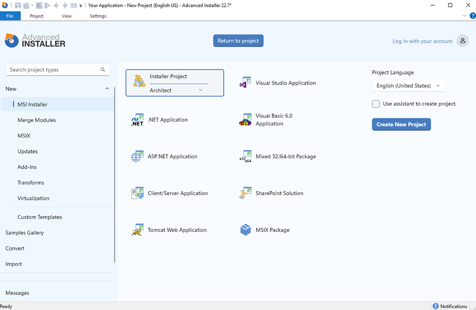 Advanced Installer は、Windows アプリケーションのインストーラ (MSI/EXE/MSIX) を、GUI 操作だけで迅速に設計・構築できるソフトウェアパッケージングツールです。
