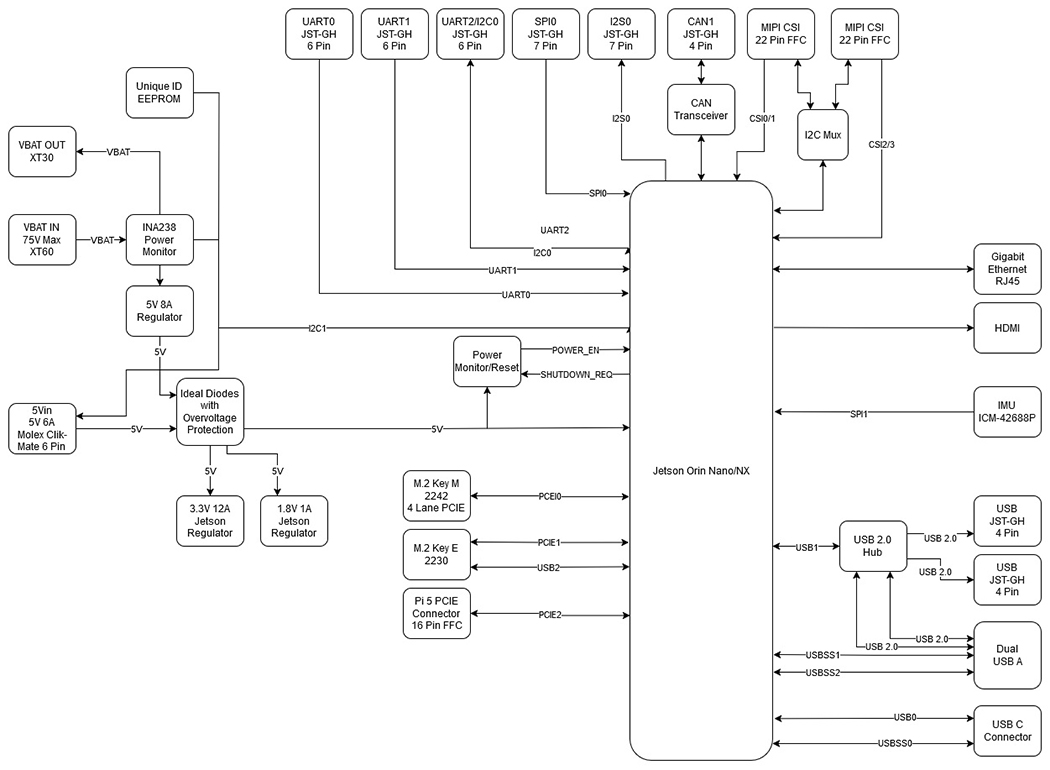 Jetson Orin キャリア基板 / Jetson Orin NX 対応ボード / Jetson Orin Nano キャリア / 高電圧バッテリ対応基板 / バッテリ直結 Jetson ボード / 産業用 Jetson キャリア / ロボット用 AI 基板 / IMU 内蔵 キャリアボード / 電力モニタ搭載 基板 / INA238 搭載 ボード / NDAA 準拠 キャリア基板 / 米国製 Jetson 基板 / エッジAI 組込み基板 / モバイルロボット AI ボード / CAN 対応 Jetson 基板 / MIPI CSI 対応 キャリア / M.2 拡張 対応 ボード / PCIe 対応 Jetson キャリア / HDMI 出力 Jetson 基板 / 高耐圧入力 AI 基板