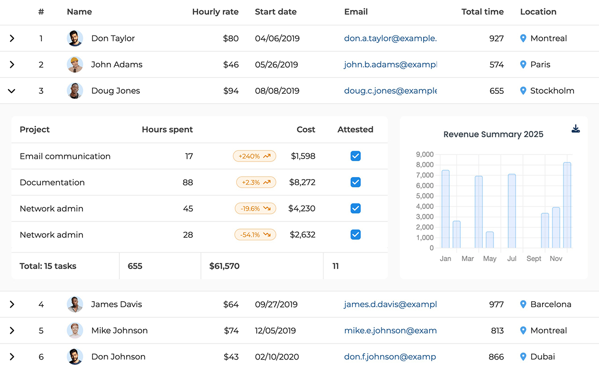 また、大量データの表示や操作を想定した高いパフォーマンスと、APIや設定による柔軟なカスタマイズ性を備えているため、開発者は要件に合わせたUIを効率的に構築できます。スケジュールやプロジェクト情報を分かりやすく可視化できるUIコンポーネント製品として、業務システムや各種Webアプリケーションの開発に活用されています。