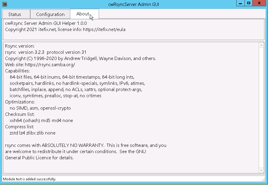 管理GUI の他、提供されるrsyncバイナリには、以下のパッチが含まれています: