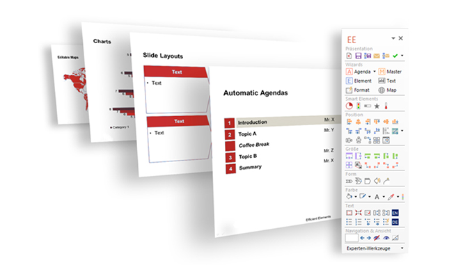 Efficient Elements for presentations は、Microsoft PowerPointに統合して使用する、プレゼン資料作成支援用のアドインです。