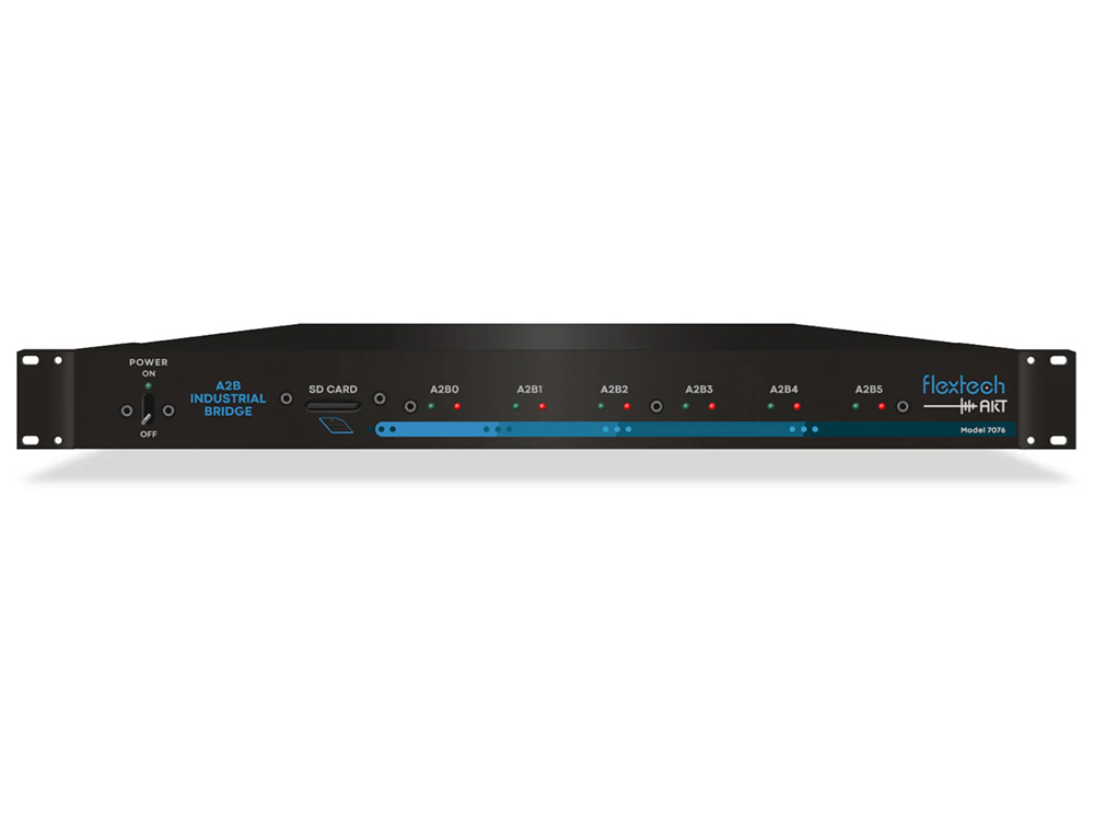 産業用途向け筐体でA²Bメイン/サブノードをエミュレートし、多チャネルオーディオ入出力に対応する高機能ブリッジ。
