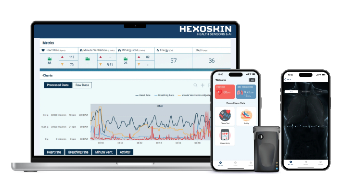 HEXOSKIN(ヘキソスキン)は、スマートシャツに組み込まれたセンサーとロガーを用いて、心電図(ECG)、呼吸、加速度などの生体信号を同時に計測するウェアラブルデバイスです。素肌に着用するだけで、日常活動・運動・睡眠時などの生理データを非侵襲的に取得できます。