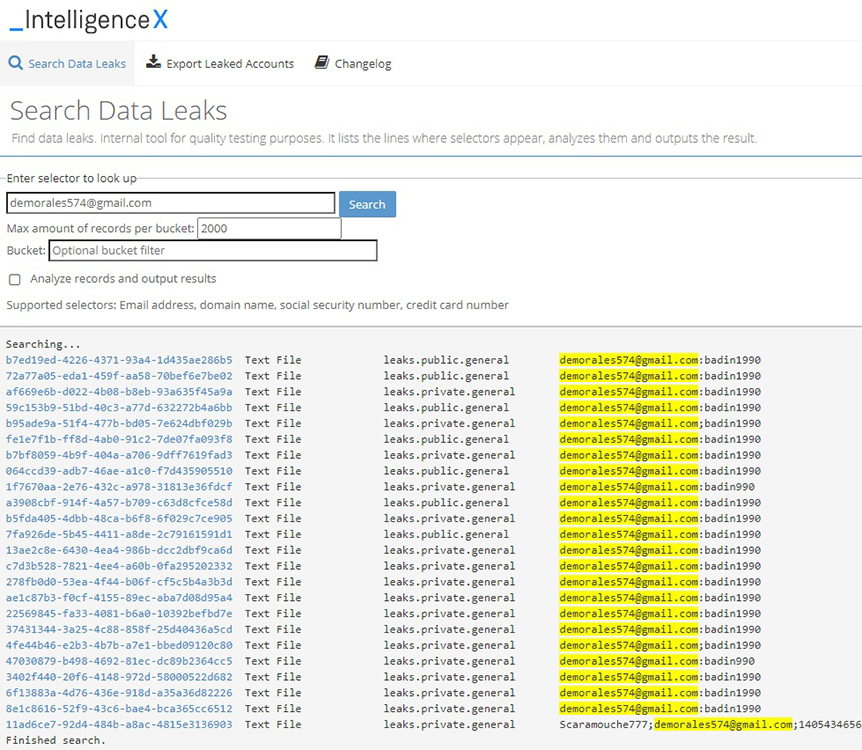 メールアドレスやドメイン、IPアドレス、URL、暗号資産アドレスなどのセレクターを起点に高度な検索を実行できる点が特長で、通常の検索エンジンでは到達できない領域の情報探索を可能にします。さらに、検索結果のダウンロードやAPI連携に対応しており、外部システムとの統合や調査プロセスの自動化にも活用できます。