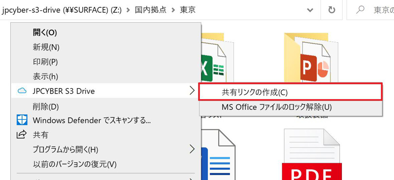 エクスプローラーでファイルを選んで右クリックし、共有リンク(Amazon S3 署名付き URL)を作成できます。