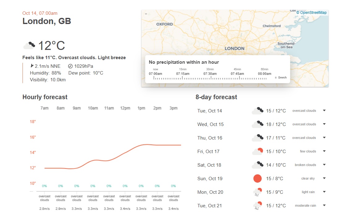 OpenWeather では、このNWPを含む複数のデータソース (衛星、観測所、各国の気象モデル) を統合し、高精度な予報データをAPI経由で提供しています。