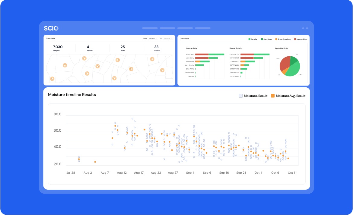 SCIO製品は、農業生産者、穀物取扱業者、飼料メーカー、食品加工企業、研究開発部門にとって、SCIO は測定からデータ活用までを一貫して支える統合型NIR分析基盤です。現場で測り、その場で判断し、その結果を組織全体で共有するという流れを日常業務の中に組み込むことで、迅速な意思決定と安定した品質管理を実現します。