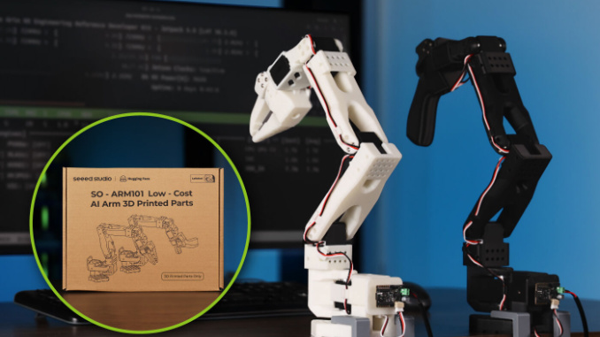 Seeed Studio社のSO-ARM101は、Hugging FaceのLeRobotプロジェクト向けに設計されたオープンソース・低コスト・AI対応ロボットアームキットです。