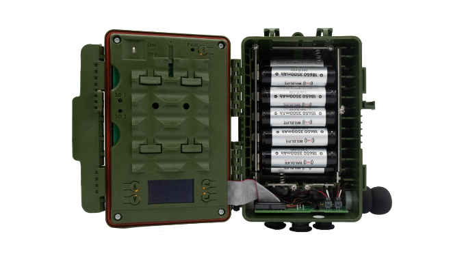 高性能バッテリー対応で鳥類や両生類の音声を高精度収録。