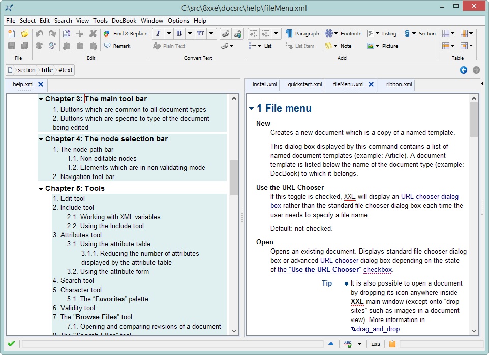 XMLmind XML Editor は、構造化ドキュメント規格に準拠したXML文書を効率的に作成、および編集するための専用XMLエディタです。
