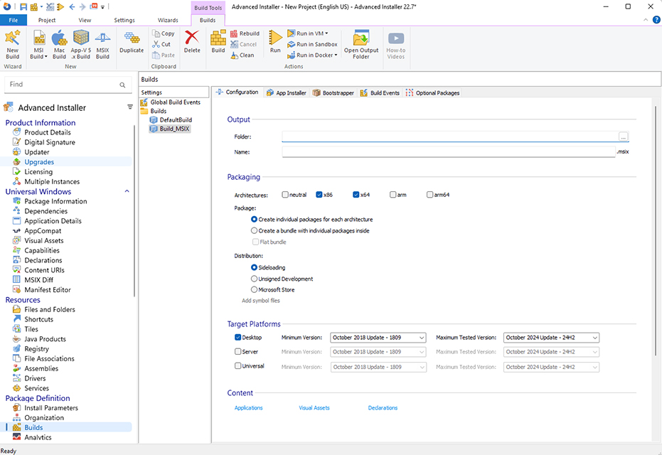 Advanced Installer は、Windows アプリケーションのインストーラ (MSI/EXE/MSIX) を、GUI 操作だけで迅速に設計・構築できるソフトウェアパッケージングツールです。