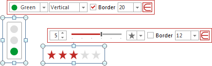 Harvey Balls や信号ライト、評価ステージ、パーセントバーなどの視覚的要素をインタラクティブに操作できる機能。