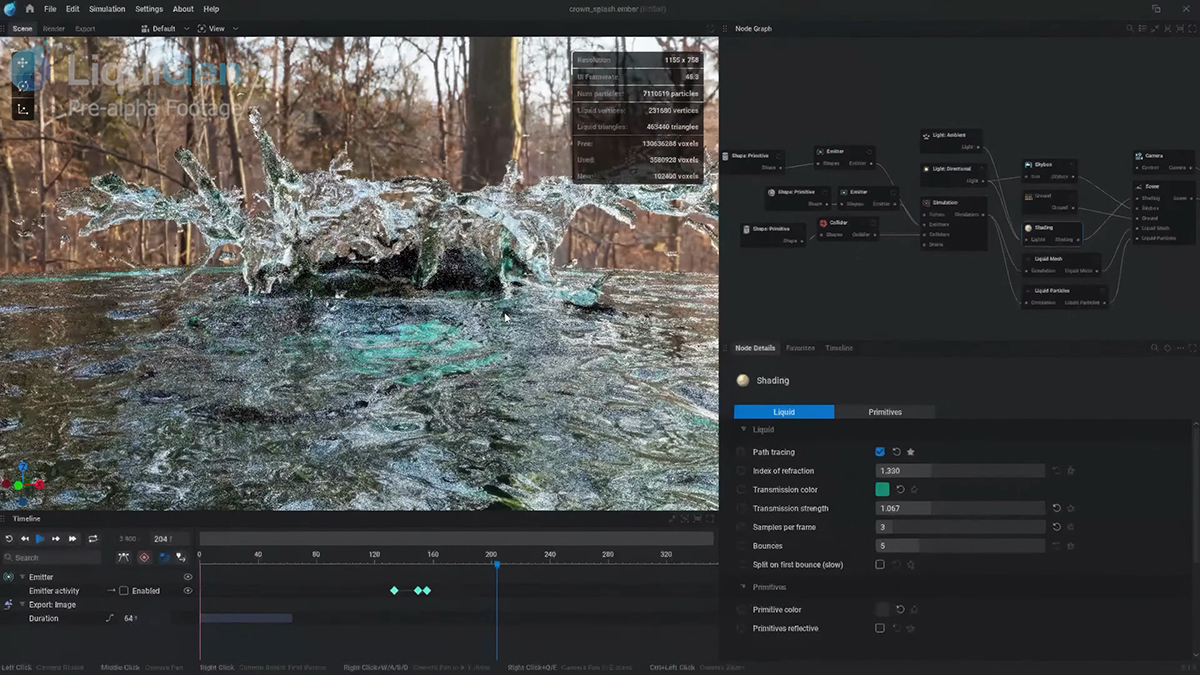 水や液体表現をリアルタイムで生成・調整できるGPUベースの液体シミュレーションツール。