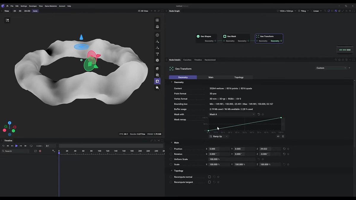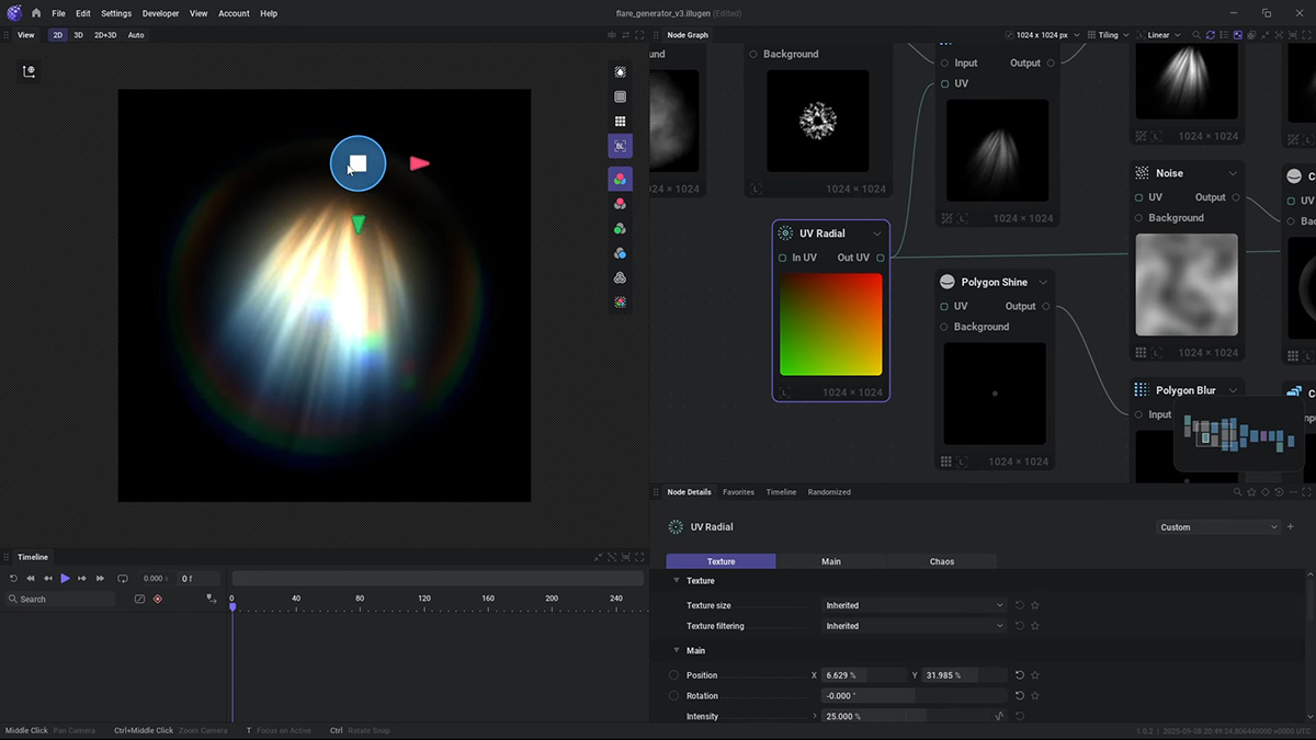 プロシージャル手法を用いて2D・3Dアセットを生成できるリアルタイム生成ツール。
