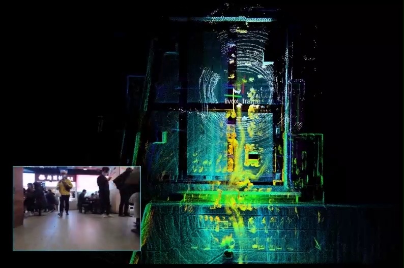 Livox 独自回転ミラー技術を採用し、機械式構造に依存せず、全周囲の三次元点群を連続的に生成して空間情報を取得。
