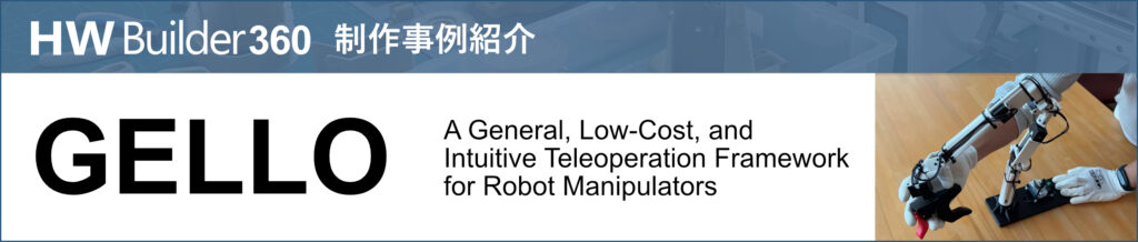 本ページでは当サービスの制作事例のひとつ、オープンソースロボットアーム「GELLO」についてご紹介いたします。