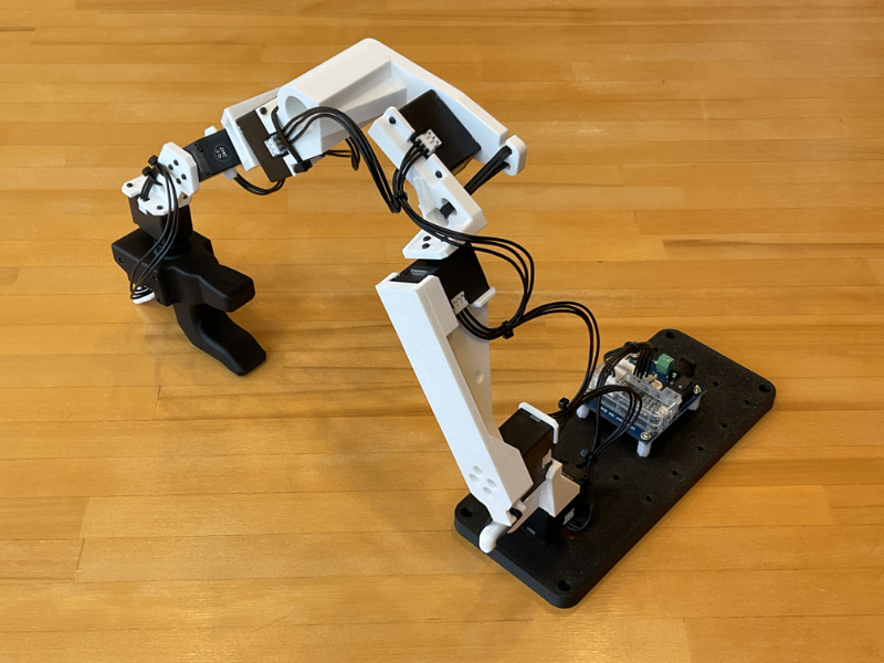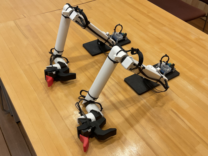組み立て後、アームの関節に配置された各モーター (Dynamixel)の ID設定や、動作確認を実施したうえで納品を致しました。